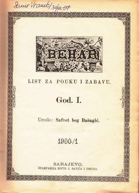Prije tačno 120 godina, u maju 1900. godine, pokrenut je časopis Behar, list za pouku i zabavu, slavni časopis koji je afirmirao bošnjačku književnost i kulturu stavivši ih u središte svog interesiranja. U njemu su publicirane brojne kritike, poezija i proza, a posebno je važno istaknuti da su u skoro svakom broju Behara publicirane i narodne umotvorine i građa iz usmene književnosti. Da nije bilo Behara, mnoge usmene pjesme i hikaje, sevdalinke i balade možda nikad ne bi ostale zabilježene. Pokretači Behara bili su najistaknutiji kulturni pregaoci bošnjačkog modernog preporoda: Safvet-beg Bašagić, Edhem Mulabdić i Osman Nuri Hadžić. Svi su oni bili već afirmirani kulturni pregaoci s objavljenim knjigama poezije, proze i publicistike. Veleposjednik iz Tešnja, znameniti Ademaga Mešić, brinuo je o finansijskom dijelu projekta, te je smatran vlasnikom časopisa.