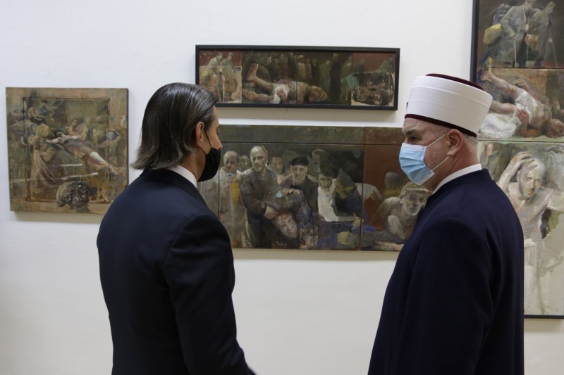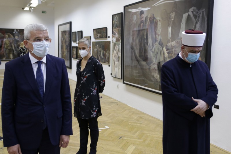 – Njegova poruka je jasna – ovom izložbom Mersad Berber, poput Bašeskije, ostavlja iza sebe hroniku o vremenu u kojem su bh. slikari dijelili sudbinu i patnju Bosne i Hercegovine, prečesto otrgnuti od svoje matice, od naroda i zemlje koja je za njih bila jedina domovina. Ali i jasnu poruku da zlo bude zaustavljeno, da boli i nedaće prestanu u našoj Bosni. Bilo ih je dovoljno u stoljeću koje je iza nas – da više nikada slobodu i ognjišta ne branimo golim životima – da se više nikome i nikada ne ponovi Srebrenica. U to ime otvaram večerašnju izložbu – rekao je Džaferović.