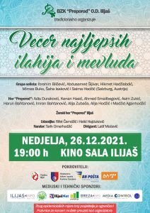 Bošnjačka zajednica kulture „Preporod“ – Općinsko društvo Ilijaš u nedjelju 26. decembra 2021. godine s početkom u 19.00 sati uprličit će tradicionalni program pod nazivom Večer najljepših ilahija i mevluda koji će se održati u Kino sali Ilijaš. U programu će učestvovati grupa solista Hor „Preporod“ i Ženski hor „Preporod“ Ilijaš, a uloga dirigenta pripast će Latifu Moćeviću.